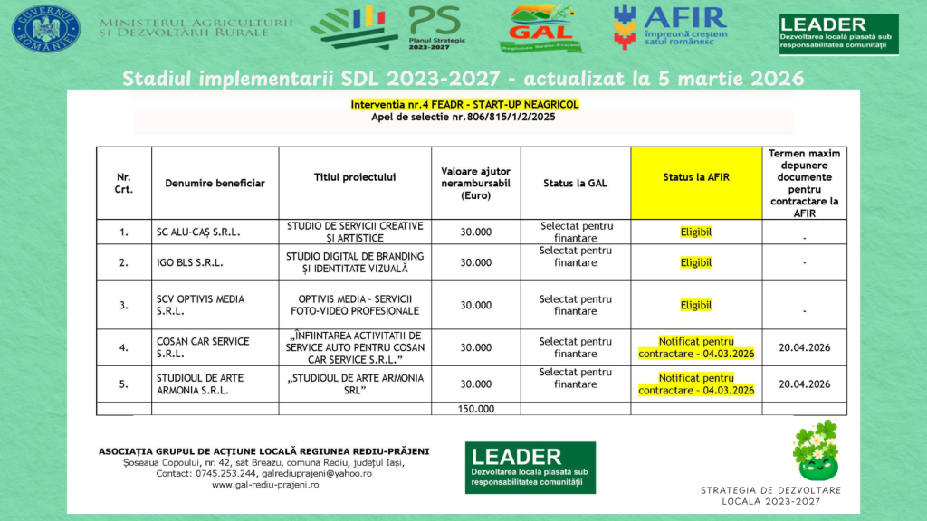 Stadiul intervenției 4 GAL Regiunea Rediu-Prăjeni05/03/202616/03/2026 Animare SDL 2023-2027 ← Stadiul intervenției 5 Acțiuni de animare – 30martie 2026 →